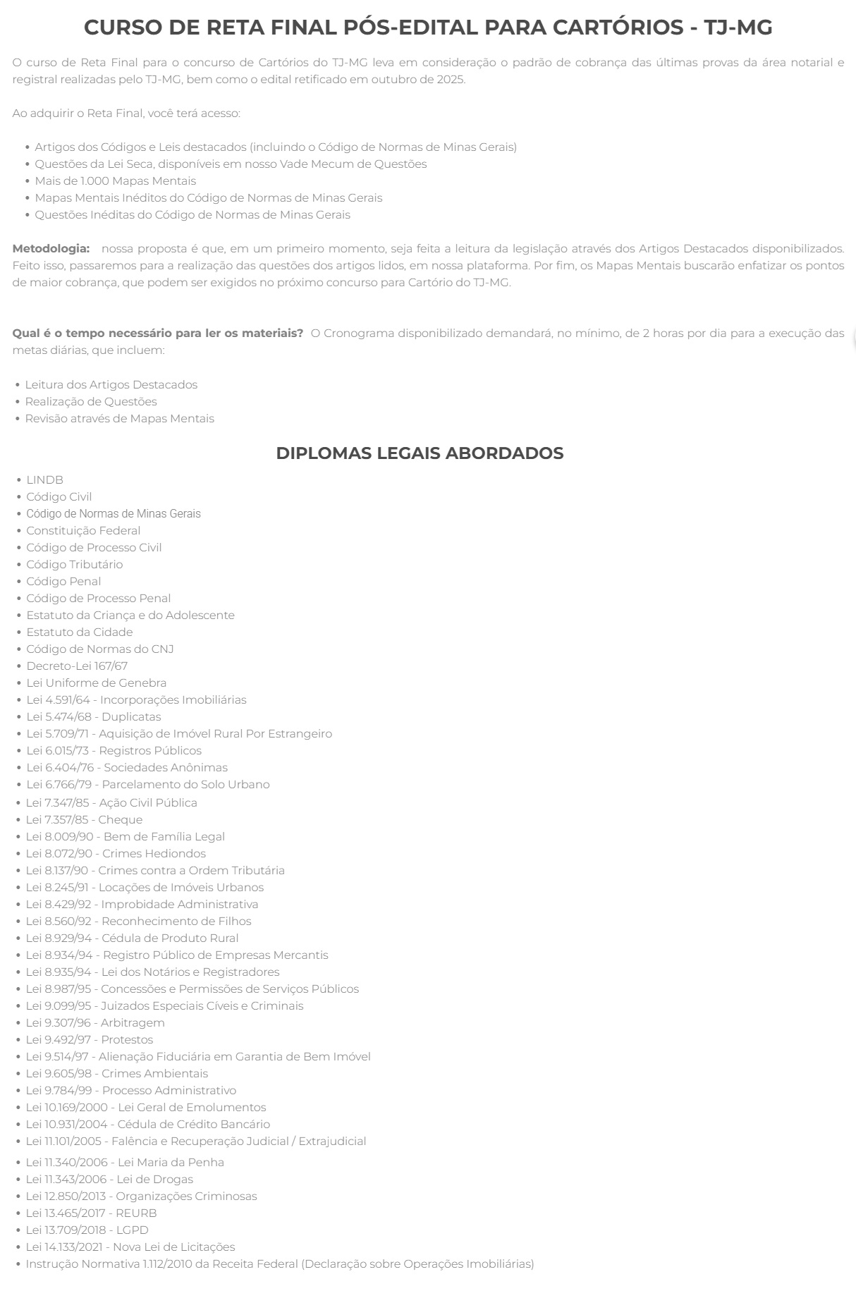 RETA FINAL - CARTÓRIOS TJ MG – Decorando a Lei Seca 2025 Pós Edital